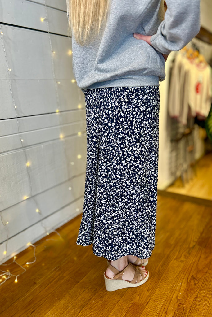 Belinda Print Midi Skirt - Navy