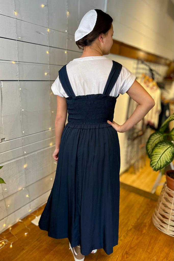 Smocked Midi Dress - Navy