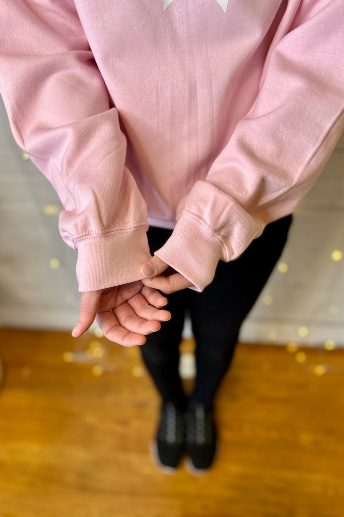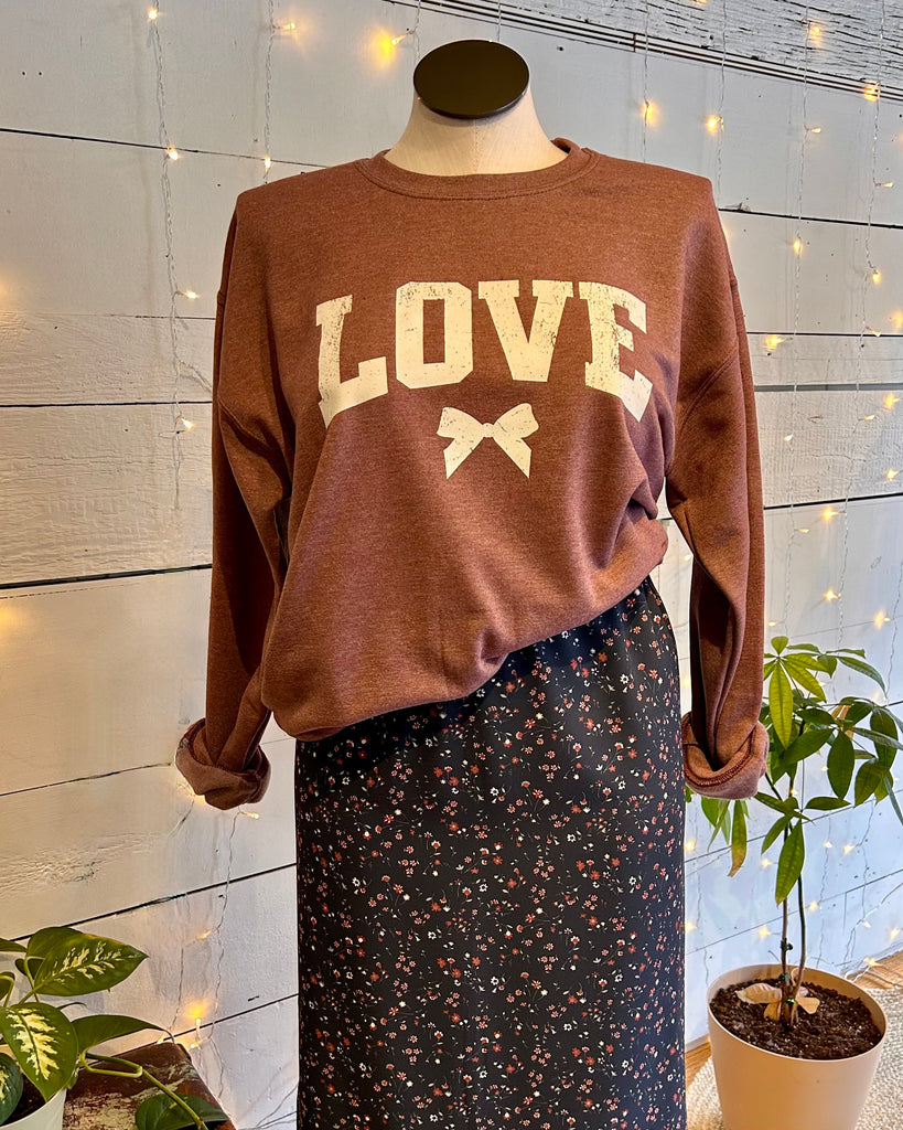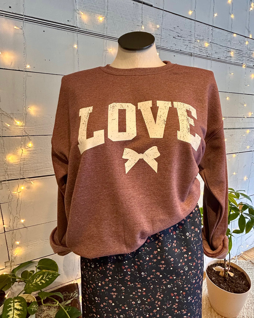 The LOVE Sweatshirt is a sweet reminder of what truly matters. With its soft blush tone, delicate bow detail, and timeless lettering, this piece reflects the beauty of love — gentle, kind, and rooted in Christ.